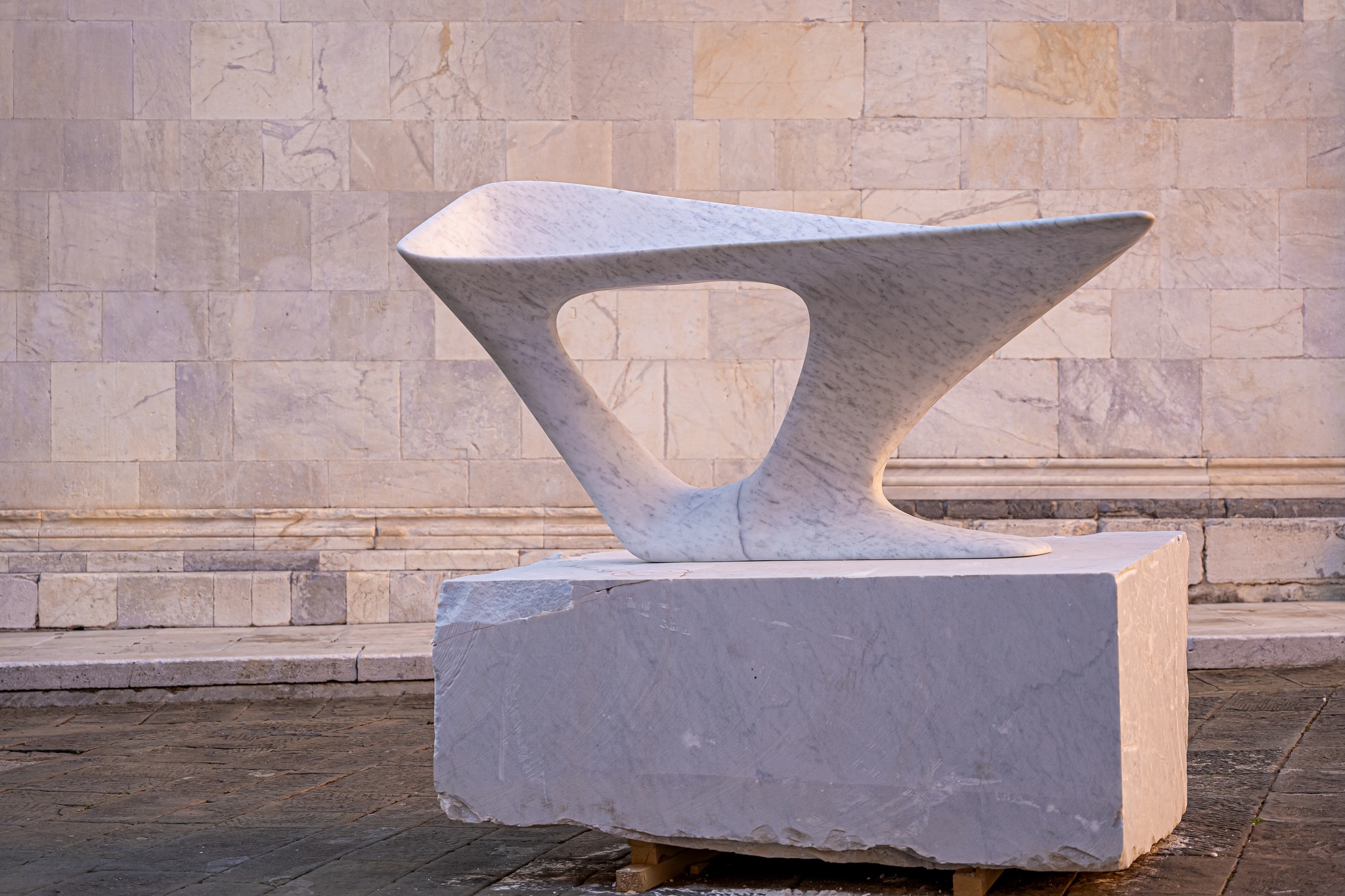 Un tavolo per la preparazione di cocktails realizzato in Marmo Venatino. La geometria organica di quest’opera si ispira alle forme biologiche, coniugando dinamicità e morbidezza per esaltare le qualità del materiale.